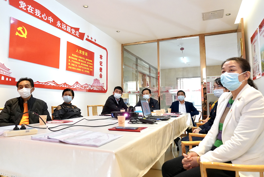 湖北百丝祥纺织科技有限公司党员干部在职工书屋集中收看收听中国共产党第二十次全国代表大会开幕会。