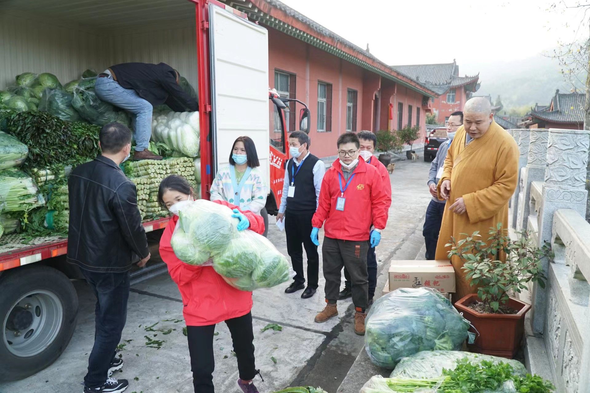 红色是希望,蓝色是安宁。县爱心义工协会、县救援协会紧急出动,捐赠、搬运、分送爱心物资,学校、医院、隔离点、福利院、寺庙,希望和安宁伴随着流动到每一处地方。