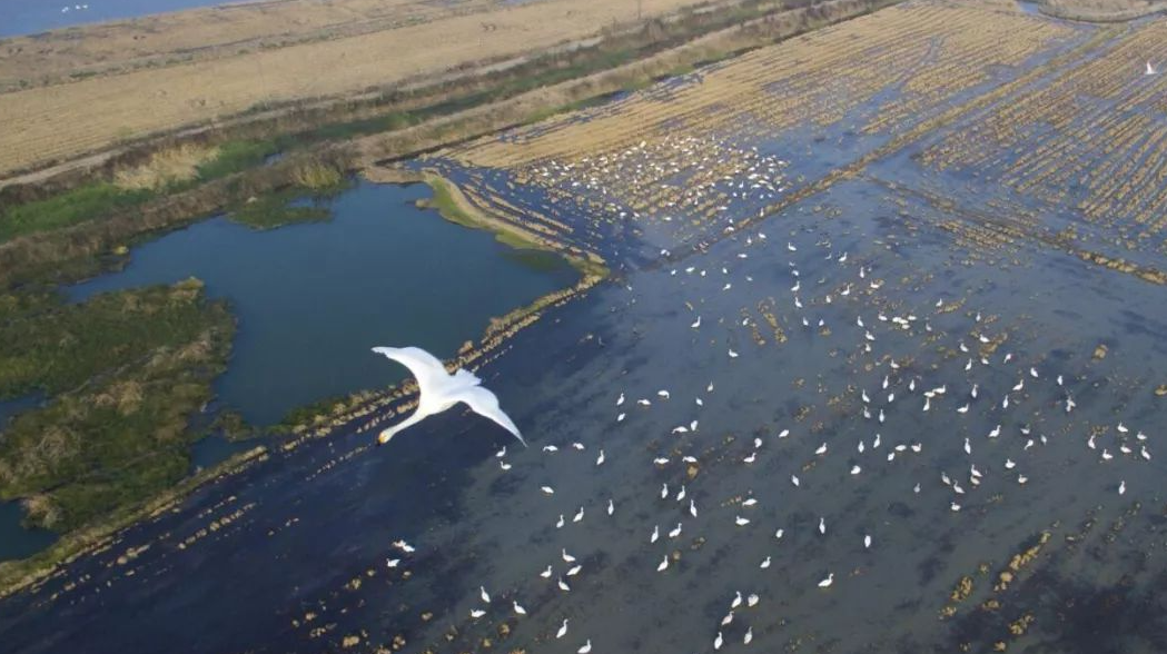 当地通过整合项目资金,斥资1400万元买断良种场20年经营权。1400亩虾稻田大部分退耕还湿,每年划出300亩轮种水稻,不予收割,作为鸟群的“口粮”,湖区“人鸟争食”矛盾破解的同时,也为当地“天鹅稻米”擦亮了金字招牌。
