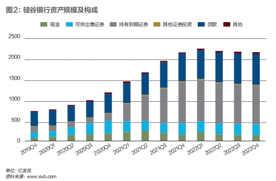 贷款和风投额度的快速增长,使科技初创企业手里积累了大量的现金和存款,而硅谷银行作为一家专注于为科技企业服务的银行,自然成为这些新增资金的一大去向。2020年二季度至2021年底的一年半期间,硅谷银行的存款规模由679亿美元上升到1892亿美元,增加了约180%(图1)。