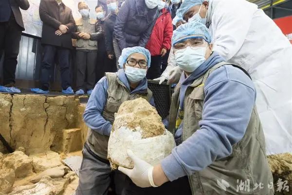 △“郧县人”3号头盖骨化石被顺利提取出土。