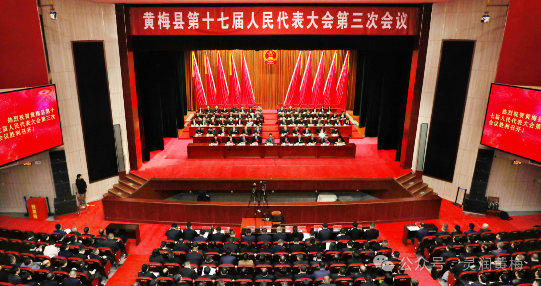 1月28日,黄梅县第十七届人民代表大会第三次会议圆满完成各项议程,在黄梅戏剧院胜利闭幕。