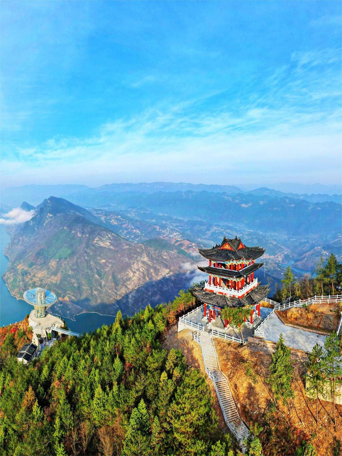 2023年12月8日,在巴东县巫峡口景区,游客将壮丽的峡江风光尽收眼底。(视界网 焦国斌 摄)