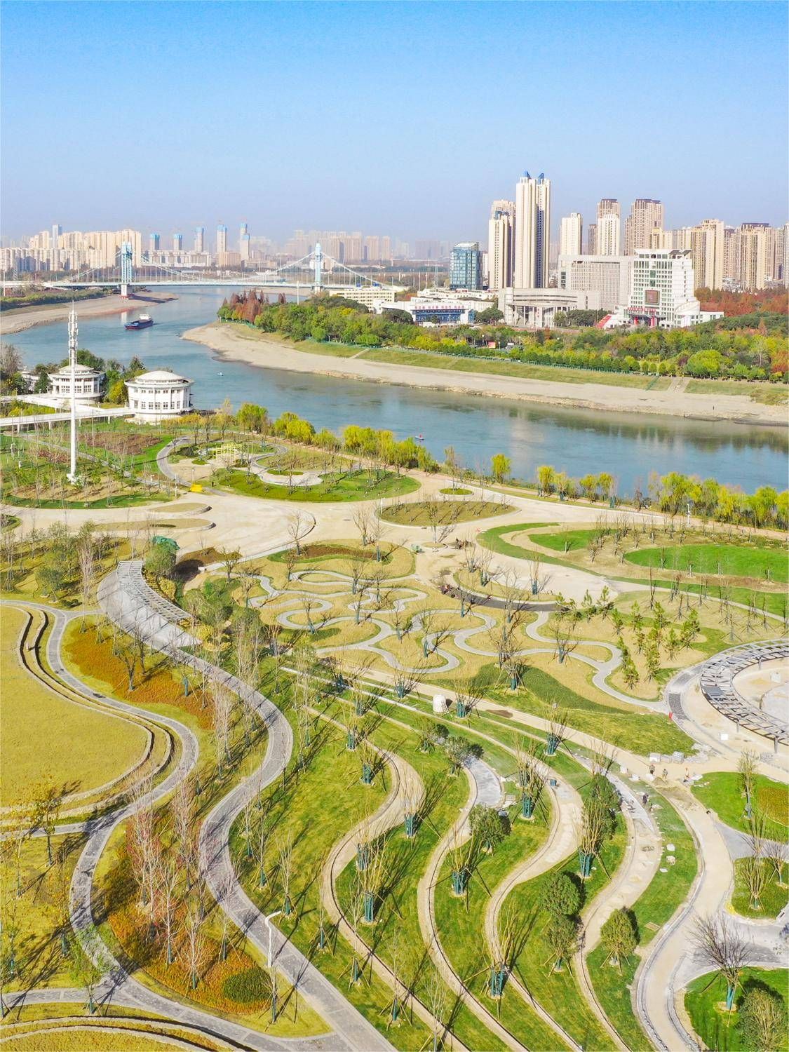 2023年12月7日,空中航拍位于武汉市汉阳区汉江南岸的汉水碧道。(湖北日报全媒记者 倪娜 通讯员 刘丁维 摄)