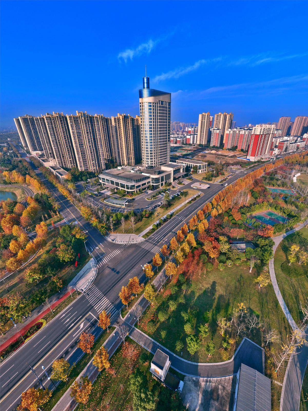 2023年12月5日,金色暖阳下,枝江市沿江行道树被染成了金黄色,分布在长江沿线,宛如一幅美丽的油画,让人沉醉其中。(湖北日报全媒记者 刘曙松 通讯员 李巧爱 田雪莲 摄)