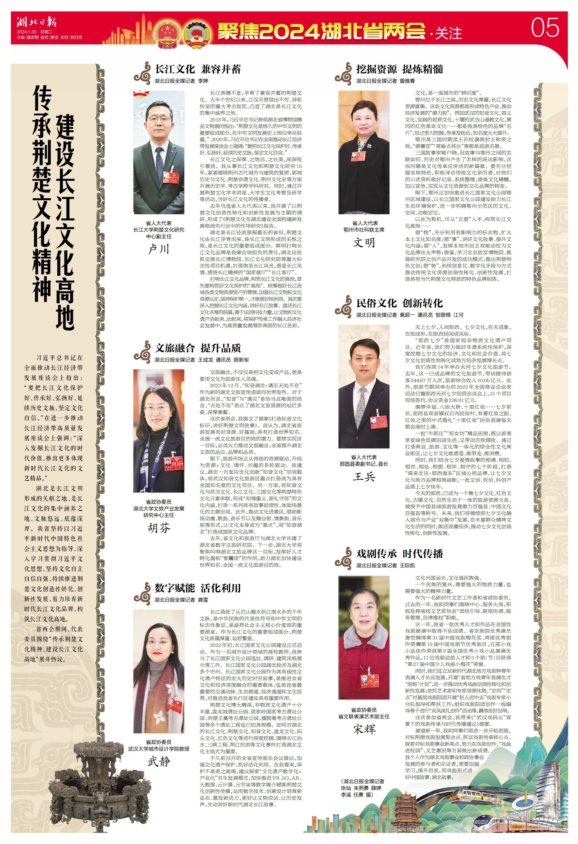 省两会期间,代表委员围绕“传承荆楚文化精神,建设长江文化高地”展开热议。
