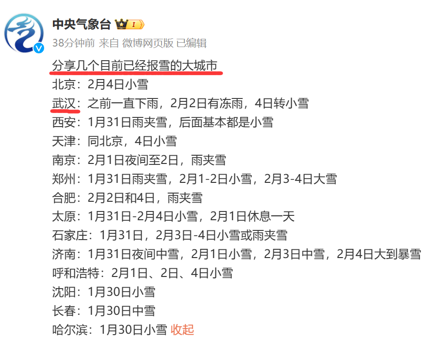 武汉这次有雪吗?从目前预报来看,4日(周日)有小雪,2日和3日(周五周六)有冻雨。