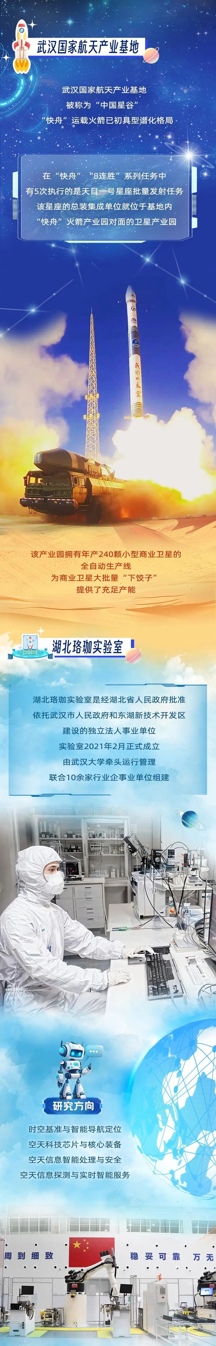 星空浩瀚无比,探索永无止境。湖北是国内商业航天的重要一极。湖北拥有航天相关国家重大科技基础设施2个,国家级创新平台23个,湖北珞珈实验室聚焦空天信息开展前沿研究,湖北在测绘、遥感、北斗导航等领域基础研究水平国际领先。近几年,湖北在空间感知、精密测量、新型材料等若干领域实现重大突破。