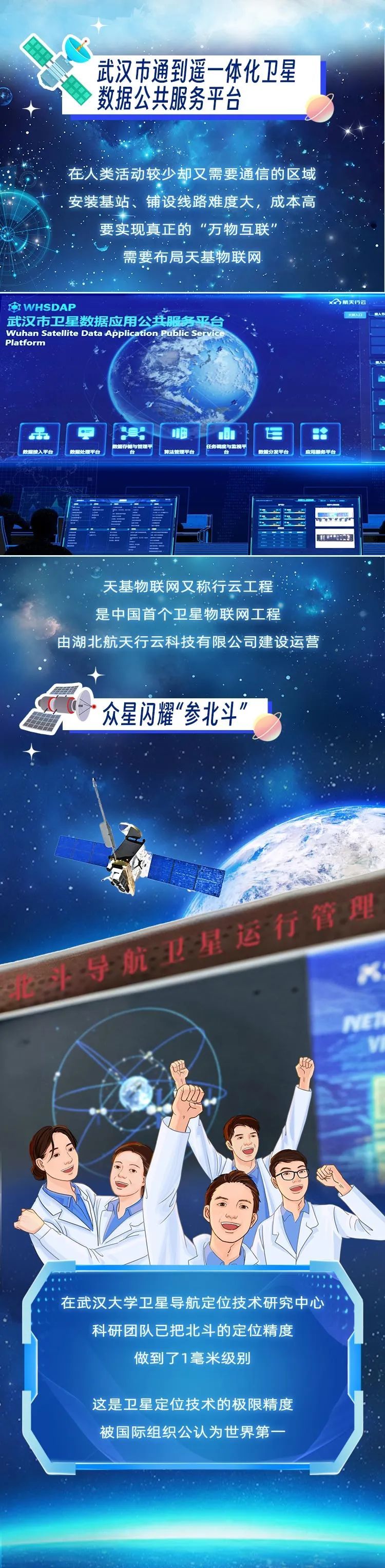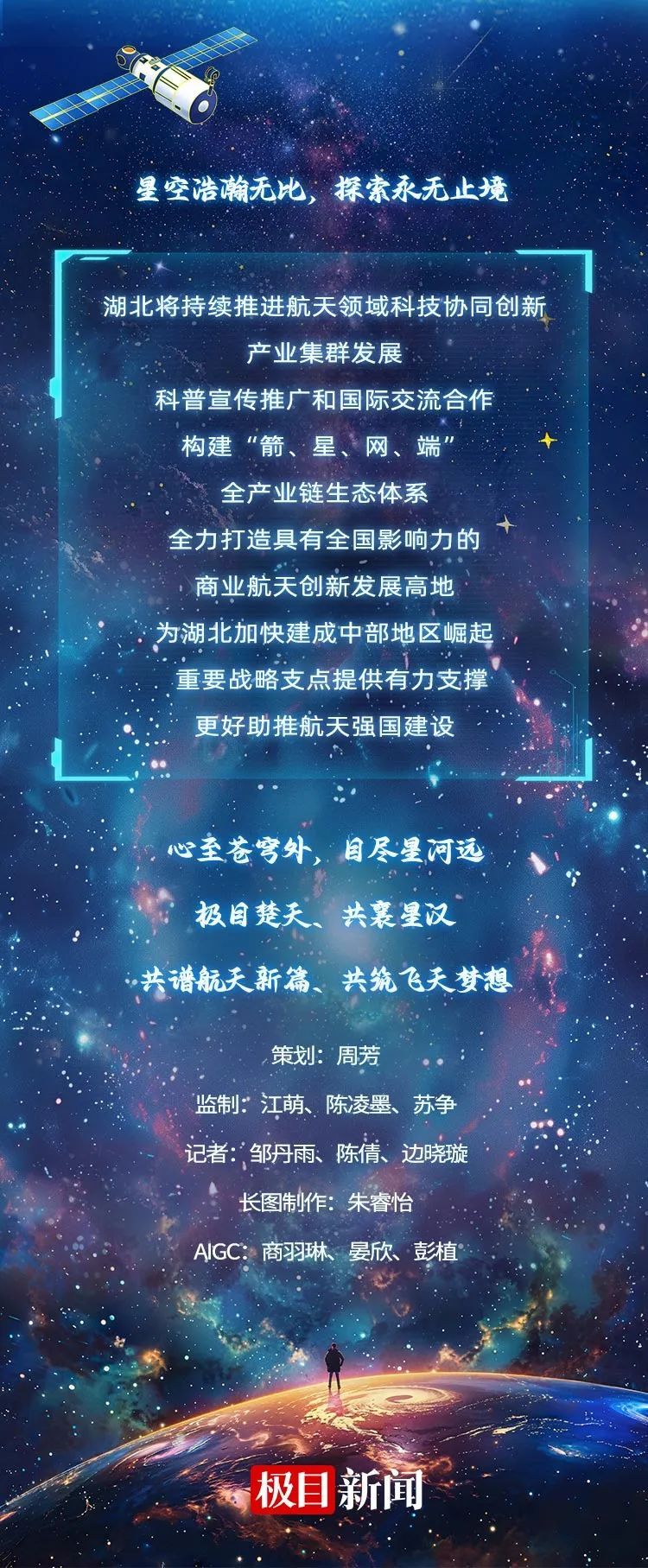 日月安属?列星安陈?跨越千年的天问,正通过中国航天人的努力找到答案。从第一颗人造地球卫星到中国航天员进入太空,从“嫦娥”奔月到“天问”探火,从“北斗”指路到“天宫”揽胜……一代代航天人前赴后继、攻坚克难的“追星之路”,展示了一幅幅中华民族把古老的“飞天梦”变为现实的壮丽图景。在这过程中,湖北始终是推动我国航天事业发展的重要力量。