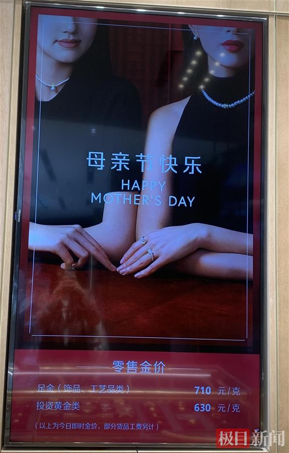 送首饰、送珠链,母亲节前,不少市民选择去传统的金店逛逛。极目新闻记者走访发现,不少品牌已经提前推出母亲节活动,部分金饰还在做一口价。