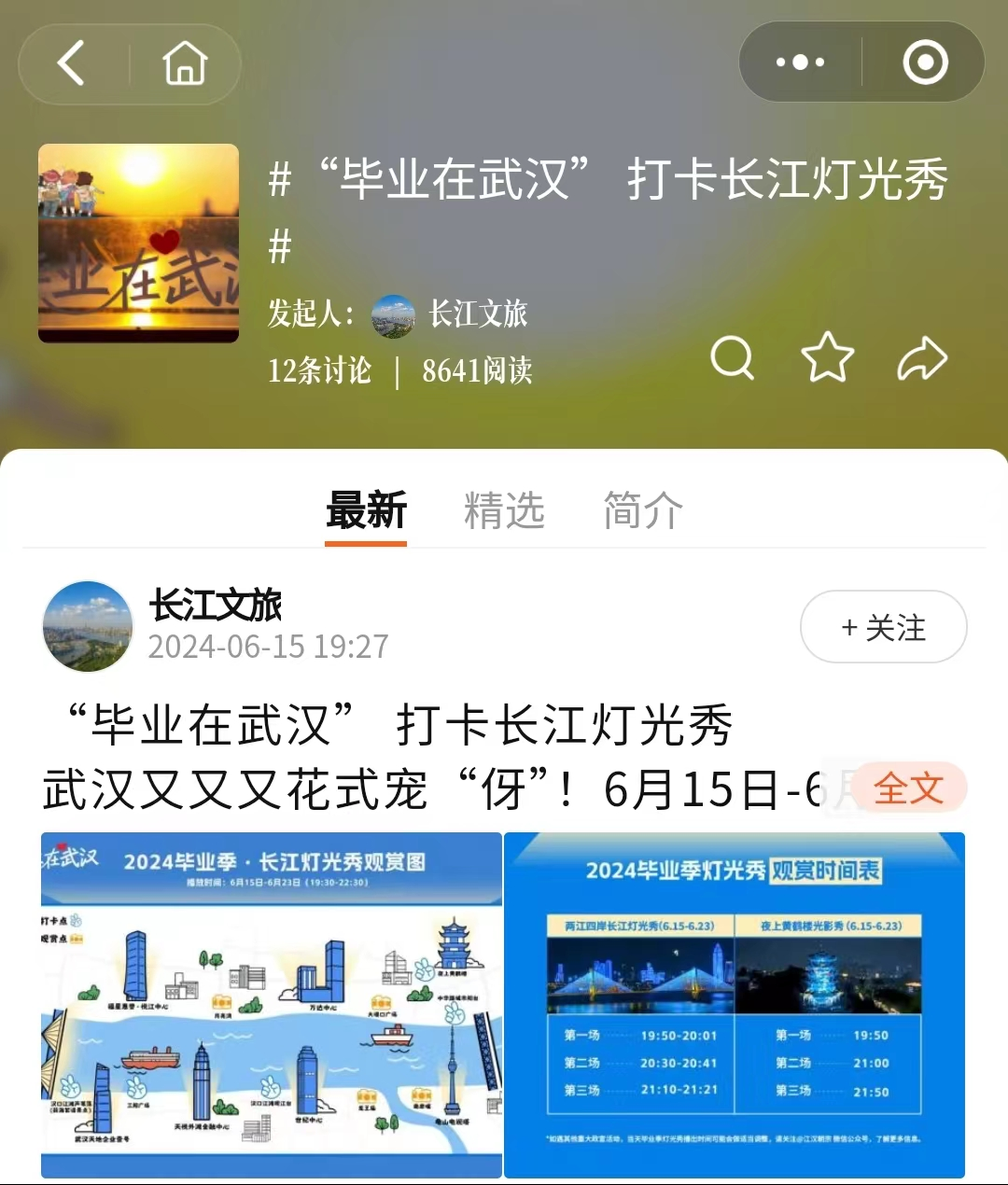 “‘毕业在武汉’打卡长江灯光秀”话题截图