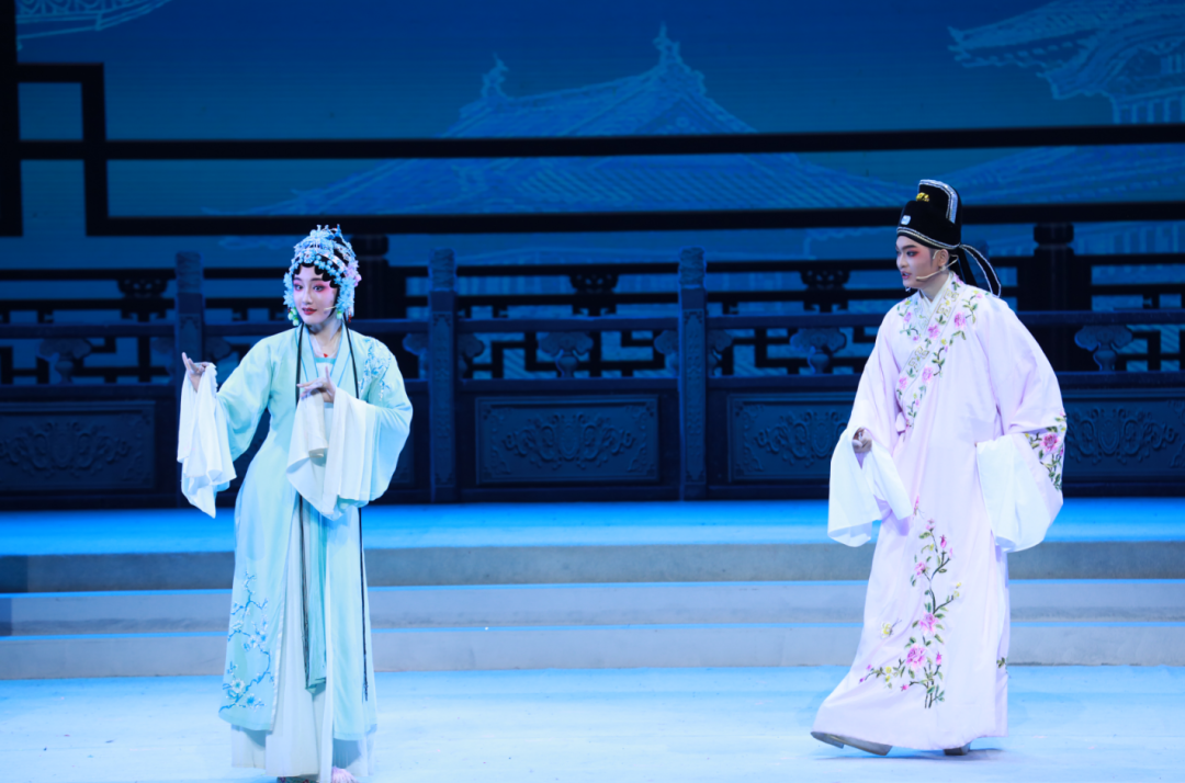 淳朴流畅的唱腔、英俊俏丽的形象,让黄梅戏经典剧目绽放出迷人的光彩,赢得了现场老师和观众的热烈掌声。