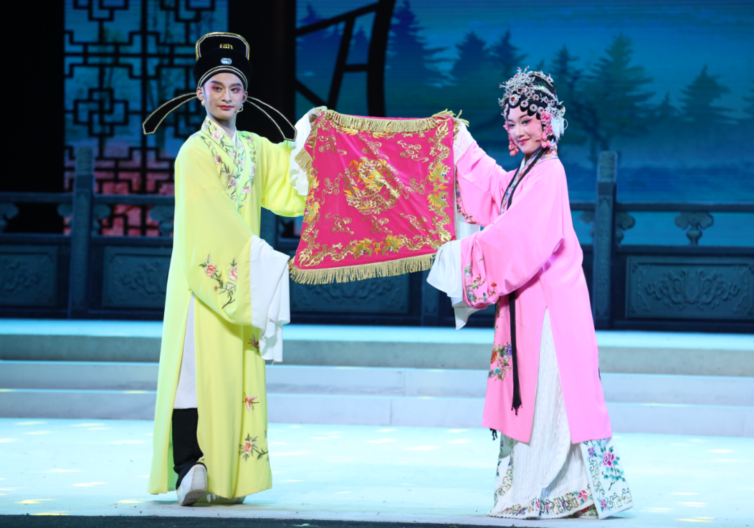 舞台上,这群平均年龄15岁的新生代演员们,以明快抒情的唱腔、细腻传神的表演和扎实的专业功底,轮番展示了唱、念、做、打、奏等功法、身段以及器乐组合,精彩呈现了《女驸马》《罗帕记》《送香茶》《扈家庄》《夫妻观灯》等经典黄梅戏选段。