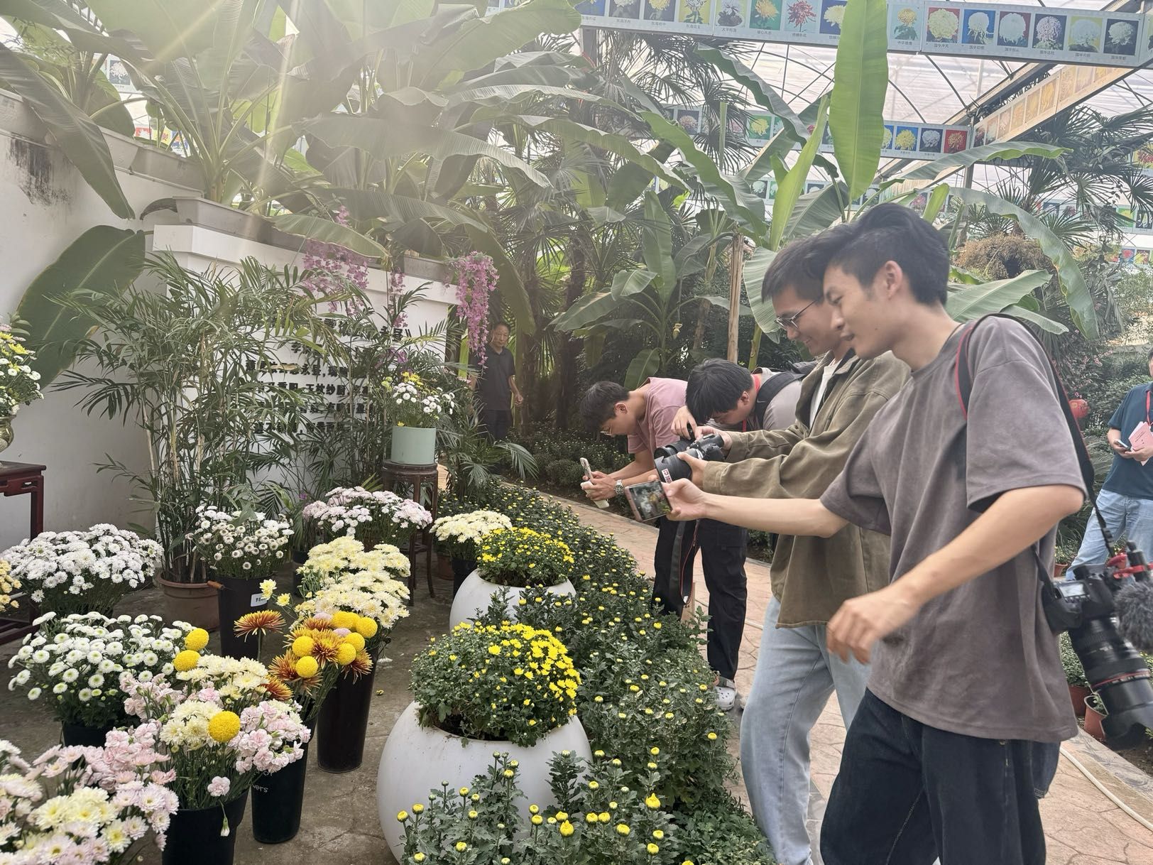 走进总占地面积1300亩的园区,满目尽是争奇斗艳的各类菊花,“今天天气比较炎热,再等一场秋雨来,喜欢阴天和雨水的各种菊花就会开的更多了。”产业园工作人员告诉采访团成员,该园区不仅有观赏旅游区,还设置了科普区、种苗培育试验区、示范种植区,是湖北省首家以菊花科研、菊花种植、菊花精深加工、菊花产品销售、布展、旅游服务、人才培养等一体化的科技型企业。