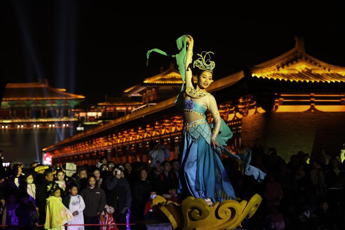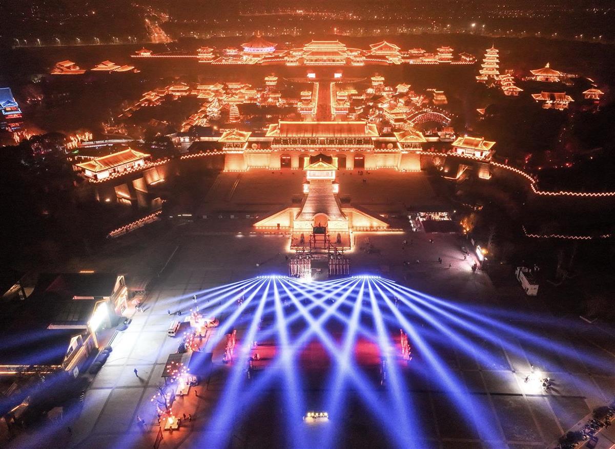 “知音湖北·欢喜过大年”新春文旅消费季活动1月22日晚在襄阳盛世唐城景区开启。启动仪式充分利用唐城景区绚丽多彩的夜间景观,将夜游演艺、非遗民俗、信息发布等环节融入其中,打造沉浸式、行进式实景光影夜游活动,为广大游客带来了一场“游唐城 逛集会 赏非遗 过大年”的新春体验之旅。
