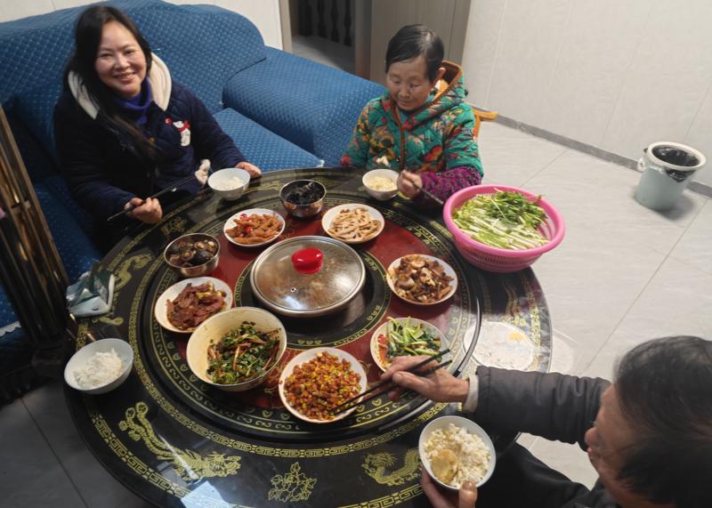 老谭一家人正在吃饭。(记者范玉峰 摄)