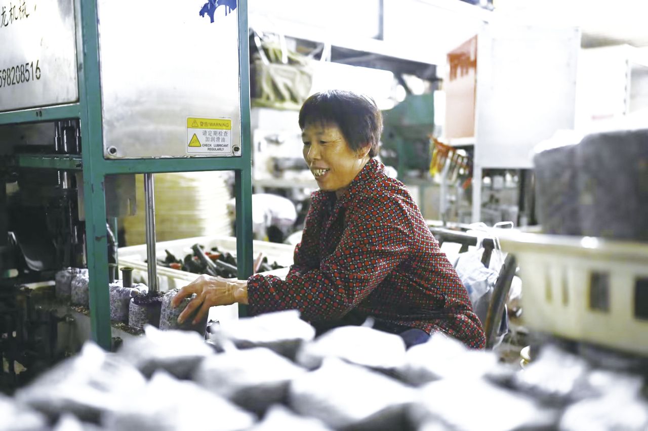零乱的代料在拌料机的“肚子”里千翻百滚,状态逐渐趋于均匀、松软,然后通过传送带输送到一墙之隔的装袋车间。工人们快速操作机器装代料、打窝口、插塑钎,并逐个人工检验,调整袋内的紧实度。