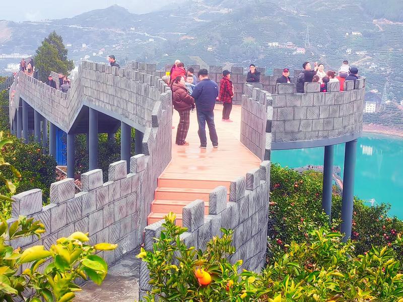 春节期间,长江西陵峡南岸的秭归县郭家坝镇邓家坡村,一条在春节前交付使用的仿古城墙果园廊道火爆“出圈”,吸引了宜昌周边县市游客和众多市民慕名打卡拍照。