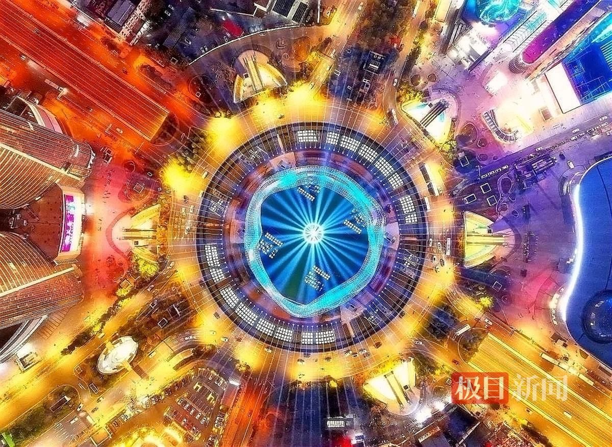 俯瞰曾为蛇年春晚分会场的光谷星河广场