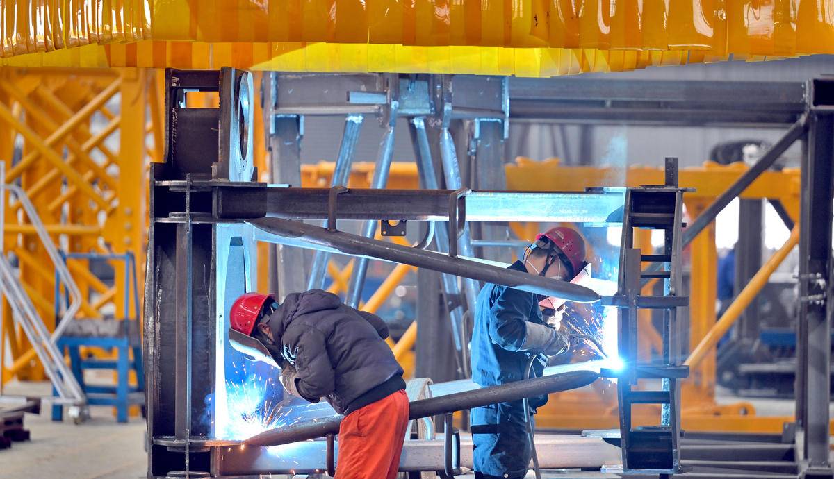 1月7日,荆州市湖北江汉建筑工程机械有限公司生产车间,工人正在赶制塔式起重机和施工升降机等畅销产品,全力以赴赶订单,抢抓新年新开局。(湖北日报全媒记者 刘曙松 通讯员 肖敏 摄)