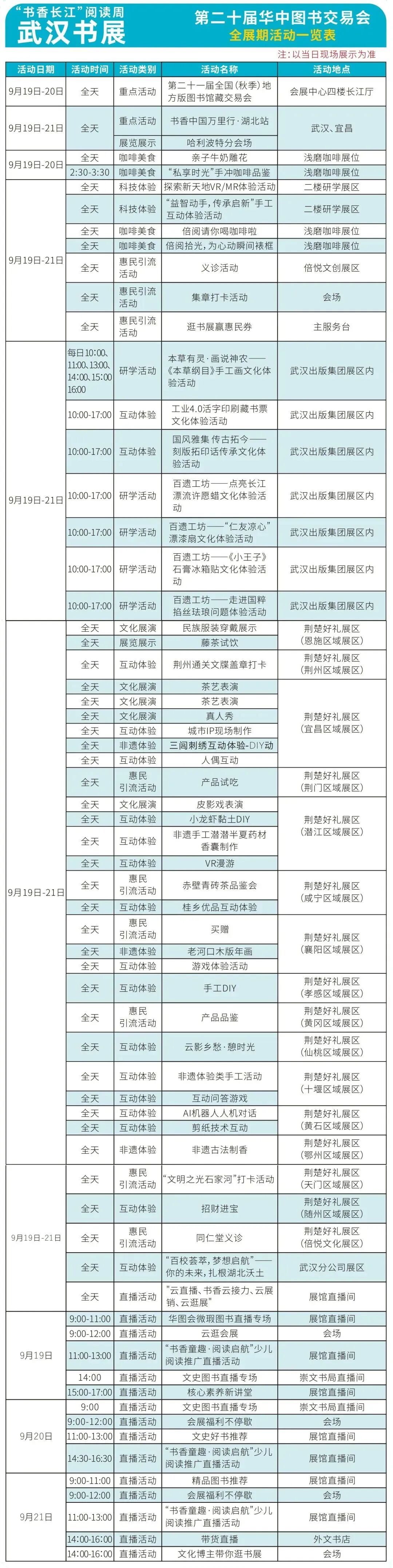 明天(9月19日)至9月21日作为2025长江文化艺术季活动之一2025“书香长江”阅读周·武汉书展将在武汉国际会展中心举办线下设立1个主会场15个市州分会场本届书展的文化活动分别有哪些?跟小布一起了解一下↓↓↓