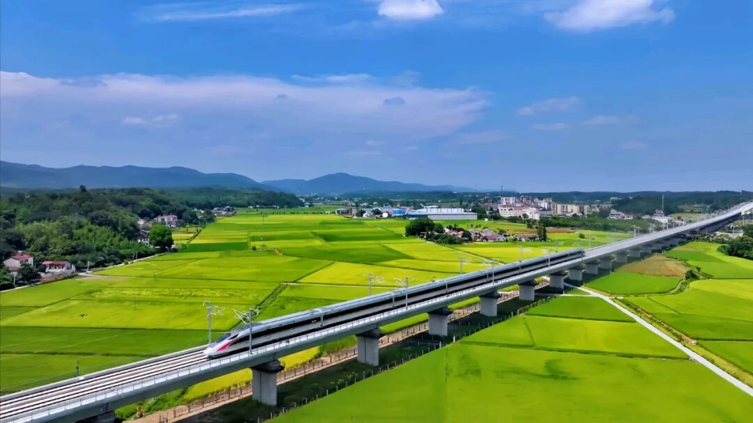 襄荆高铁在田野高架桥上飞驰。 图片来源:中国中铁微信公众号