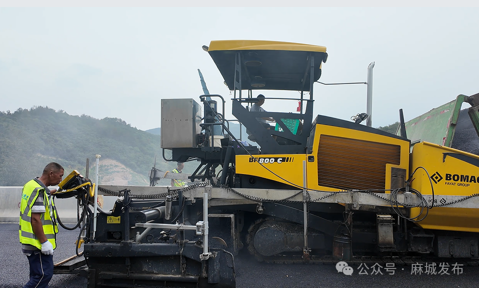 在三河口镇G220麻城市商家垸(鄂豫界)至边店段新建项目现场,2台摊铺机徐徐推进,4台压路机来回碾压,工程稳步推进中。