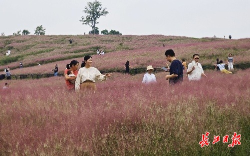 二妃山粉黛草花海进入最佳观赏期,游客如织,众多网友在社交媒体上分享视频、照片,“太美了,落日时分来更好看”。