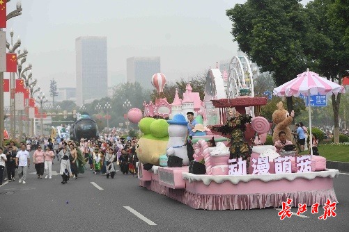 “热度不降温”。国庆长假期间,武汉将参与“河山添锦绣”文旅IP城市大巡游活动的23台主题花车分散至光谷网球中心、汉口江滩等城市文旅地标进行静态展示,成为热门打卡点,吸引了大量市民游客驻足观赏、合影留念。