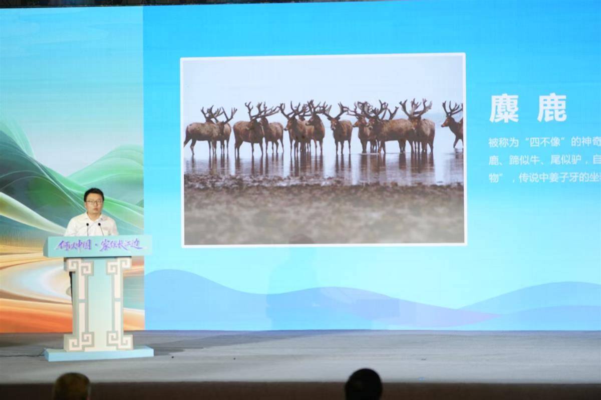杨涛是一名在石首麋鹿保护区从事科研监测工作14年的生态工作者。在“何以中国 · 家住长江边”网络主题宣传活动启动仪式上,他告诉大家,30多年前,湖北只有64头麋鹿。