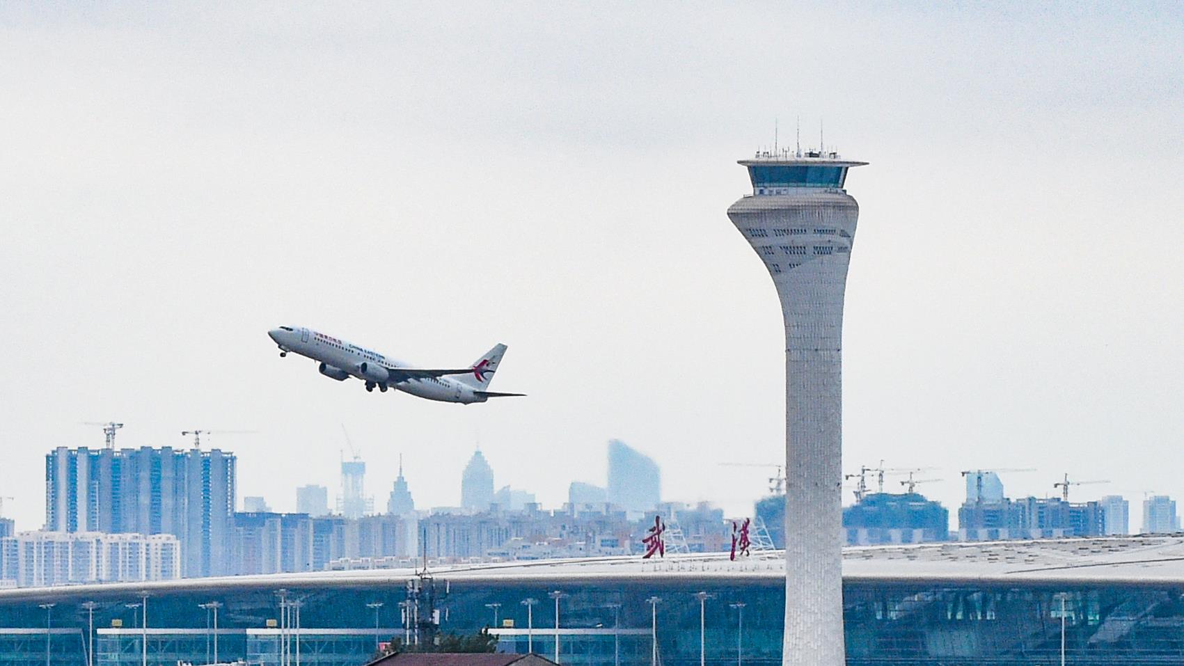 武汉天河国际机场,跑道上空,引擎轰鸣划破天际。(湖北日报全媒记者 何宇欣 摄)