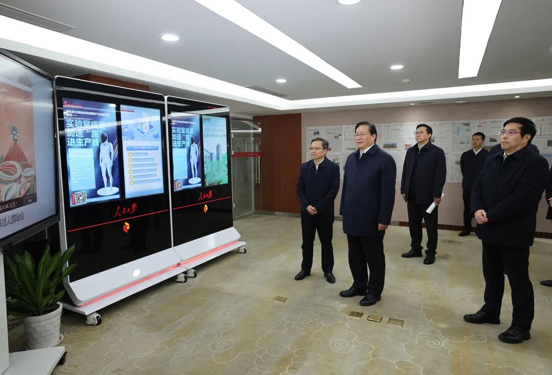 王忠林来到人民日报社湖北分社,参观社史文化展,浏览电子阅报栏,察看人民网湖北频道重点报道。他说,人民日报作为党中央的机关报,近年来围绕湖北贯彻落实习近平总书记重要讲话精神,推出了一系列站位高、思考深、分量足的新闻报道,希望分社继续用精准笔触提升新闻宣传质效,以深刻解读凝聚发展共识,为推动湖北高质量发展加油鼓劲。