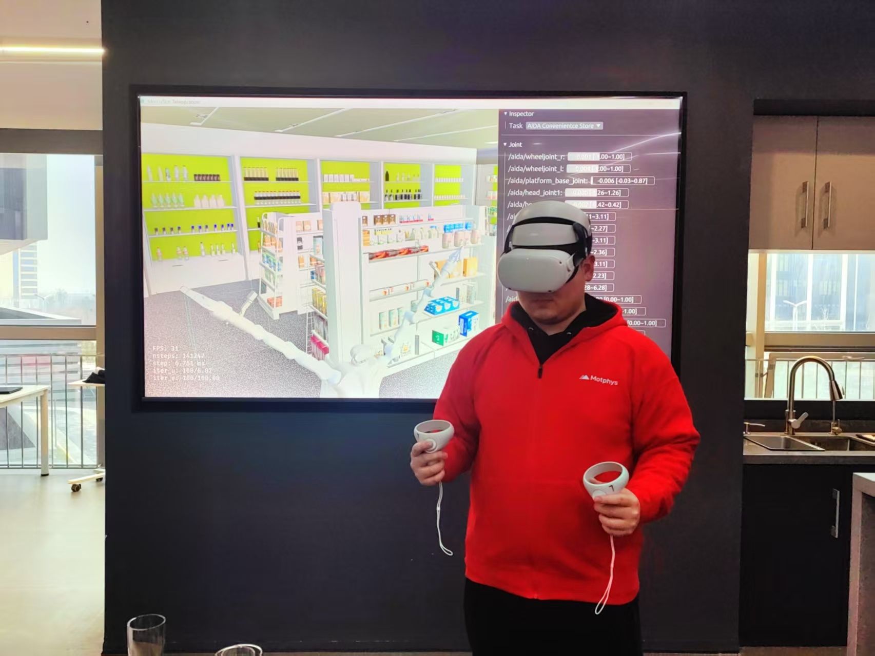 在这个“学校”里,没有固定的教室,场景可以随时切换:从繁忙的超市收银台,到摆放着刀叉的餐厅餐桌,再到需要精细操作的工业流水线。雷非瑶介绍,这种仿真训练是机器人学习和进化的必经之路。“仿真训练场相当于机器人的‘虚拟学校’。从超市到餐厅,从家居到工业,多种高仿真场景不断切换,让不同形态的机器人以远超真机的效率,源源不断地产生仿真数据,为机器人‘大脑’进化提供支撑,让它们在真正上岗前就能完成‘岗前培训’。”