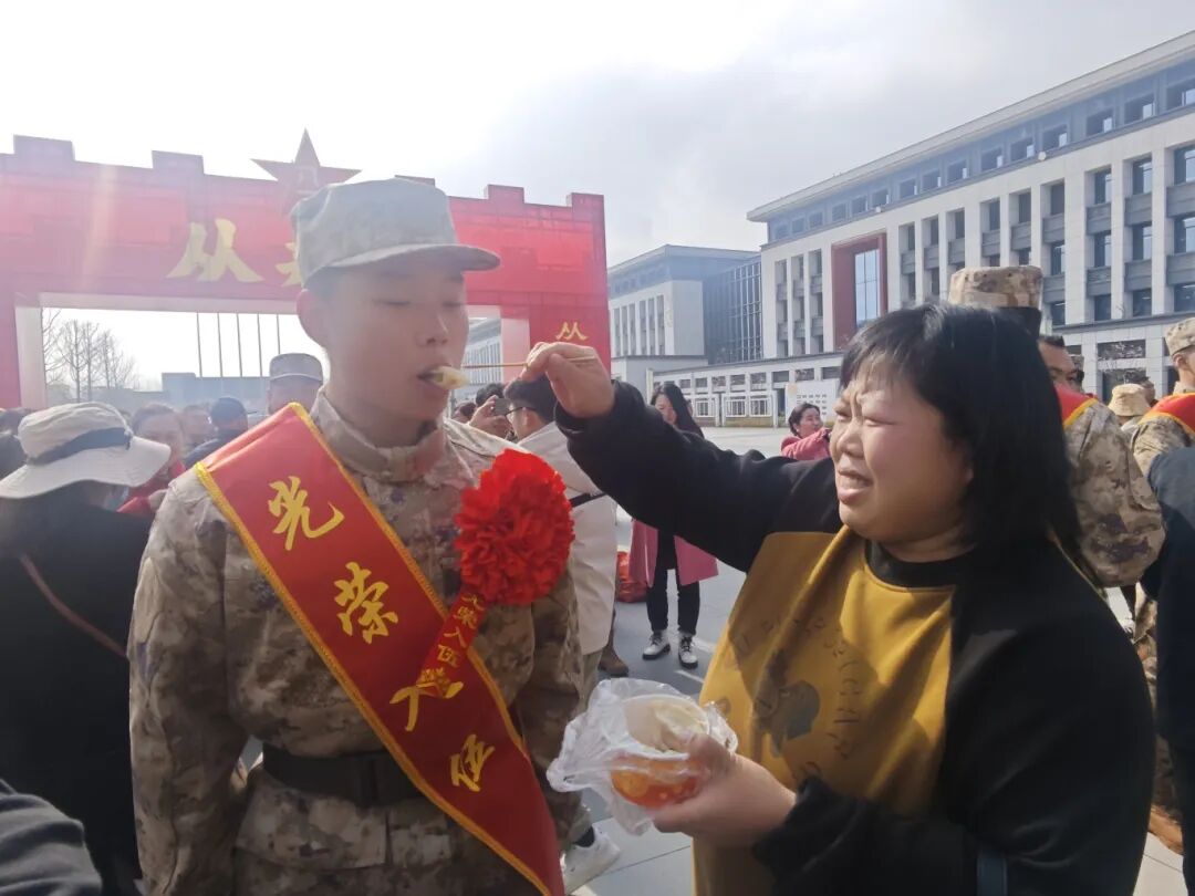 送行的家属中,或语重心长,叮咛新兵保家卫国、扛起担当,或难言不舍,嘱托新兵照顾好自己,早日适应军营生活。