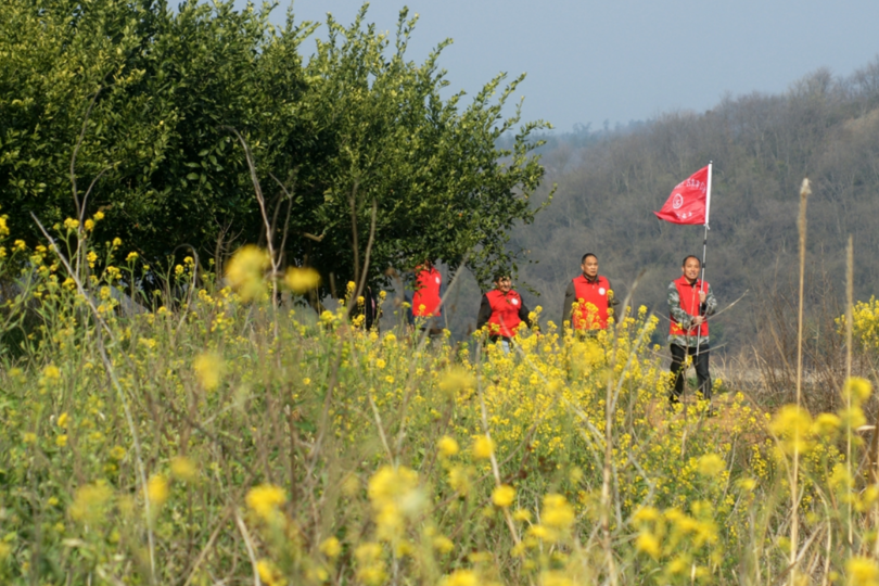 早春3月,马河镇关庙岗村的漳河岸边,村支书老郑带领巡河队员从青翠的橘园果树间走来。