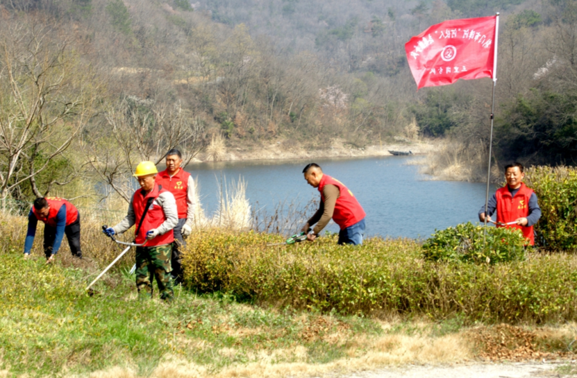 漳河水库马河镇三里岗村林家沟,“河伙人”志愿者正在“清扫家园”。