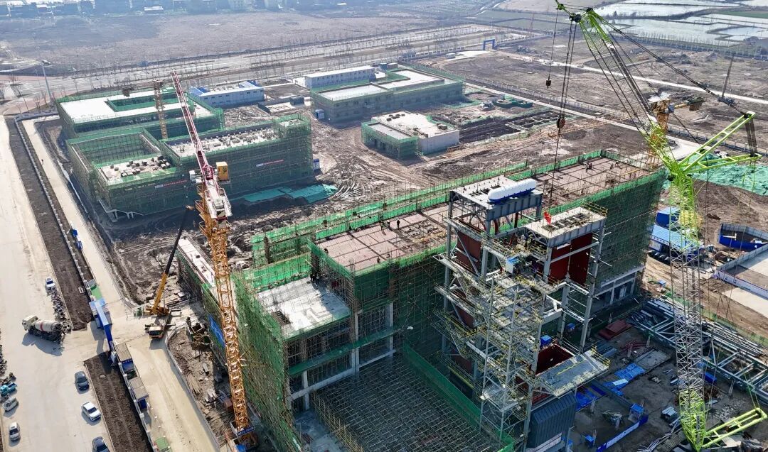 作为绿色印染产业园的关键能源配套,热电联产项目正加快建设。项目建成后,可实现每小时稳定供应700吨蒸汽,为园区企业提供清洁、稳定的热源,有效降低综合能源成本,补齐印染产业“用能贵”的短板。目前,主厂房已完成90%的结构搭建,所有设备全部订购完成,锅炉水冷壁、锅炉钢架正在拼装,计划6月底完成全部建设并试机。