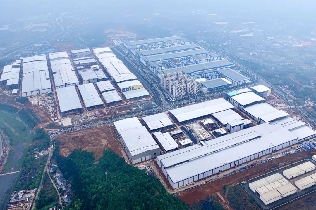 从空中俯瞰,一座座厂房鳞次栉比、错落有致,在春光中舒展身姿。项目现场,5000多名工人在各个作业面各司其职、穿梭忙碌,800多台机械设备精准作业、高效运转。