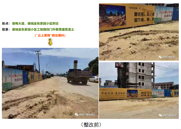 8、晋梅大道 徽城金色家园小区工地围挡门外散落建筑渣土