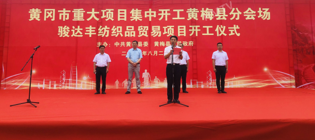 云上黄梅报道(全媒体记者:周求安)8月28日上午,黄冈市重大项目集中开工黄梅县分会场湖北骏达丰项目开工仪式举行。县政协主席龚家雄,县领导罗盘军出席开工仪式。