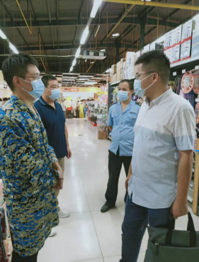 雷镇长一行来到成丰超市,检查以消防为重点的安全生产工作,对消防通道出口的门上锁,责令立即整改,并建立日常安检台账,该超市员工能够熟练使用灭火器,受到雷镇长的肯定。