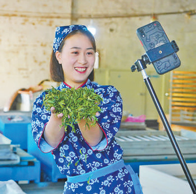 浙江省长兴县父子岭村志愿者开展“精准帮扶·卖茶助脱贫”直播卖茶活动。