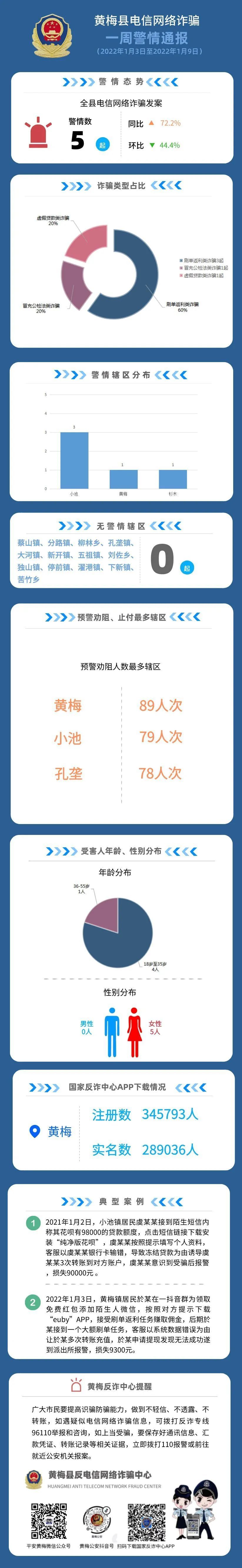 黄梅县电信网络诈骗一周警情通报(2022年1月3日-1月9日)