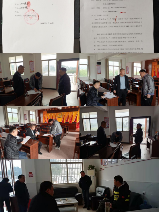 2022年2月28日,小溪村一组村民柳某与同组村民因门口水泥路外土路与其前面房屋屋角处土路路权问题发生争执,后经小溪村书记柳雄文及治安主任、网格员柳康调解,双方达成协议,不再发生任何矛盾。