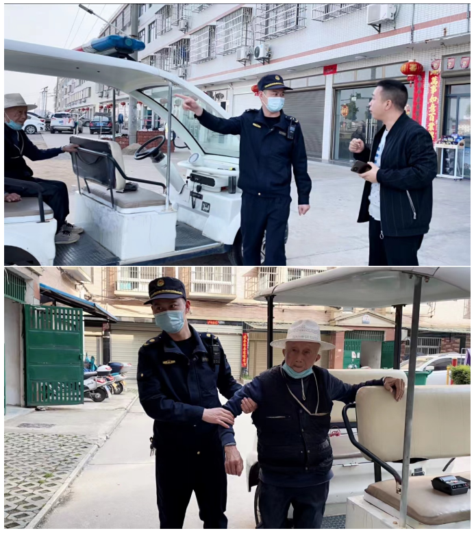 在执法人员的护送下,一路到达八角亭中学附近,但老人还是无法记清自己的家庭住址,也记不清楚自己儿女的名字,且身上也没有身份证件和手机。从老人的话语中,听到了“八角亭公园”几个字,通过向路边超市店主打听核实得知,老人是八角亭花园小区的居民。