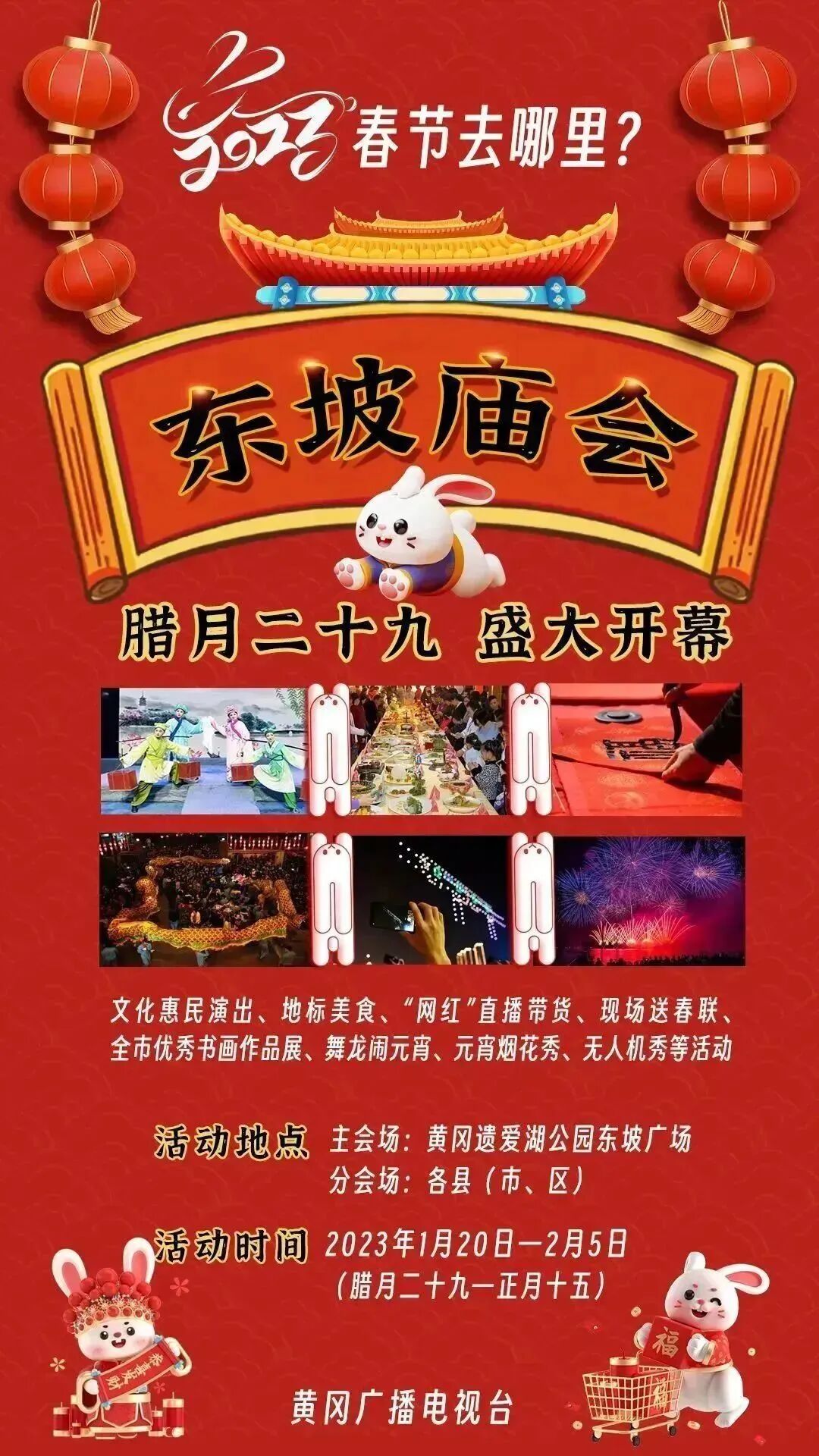 东坡庙会·2023春节季由黄冈市委市政府主办,市委宣传部、市文旅局、市商务局、市文联、市城管、市供销社、黄州区委区政府承办。