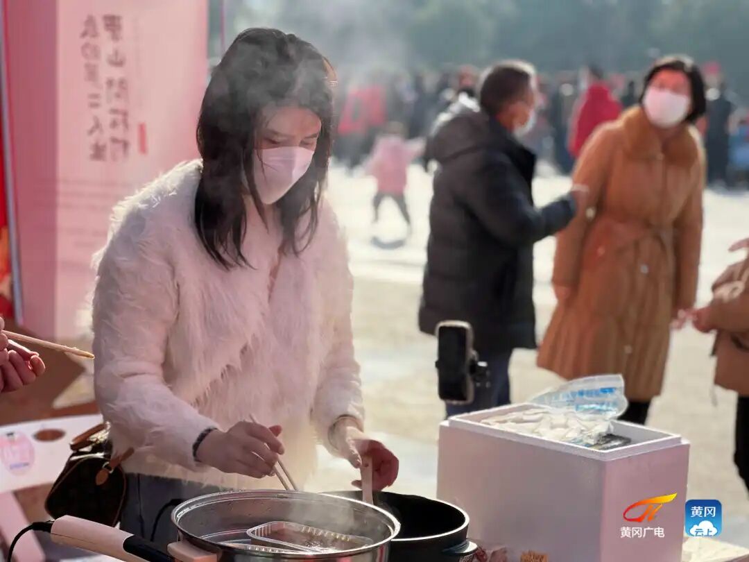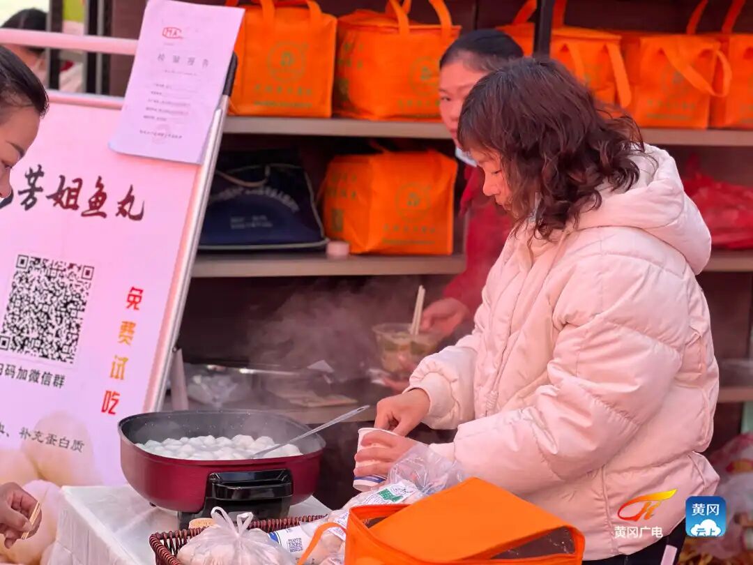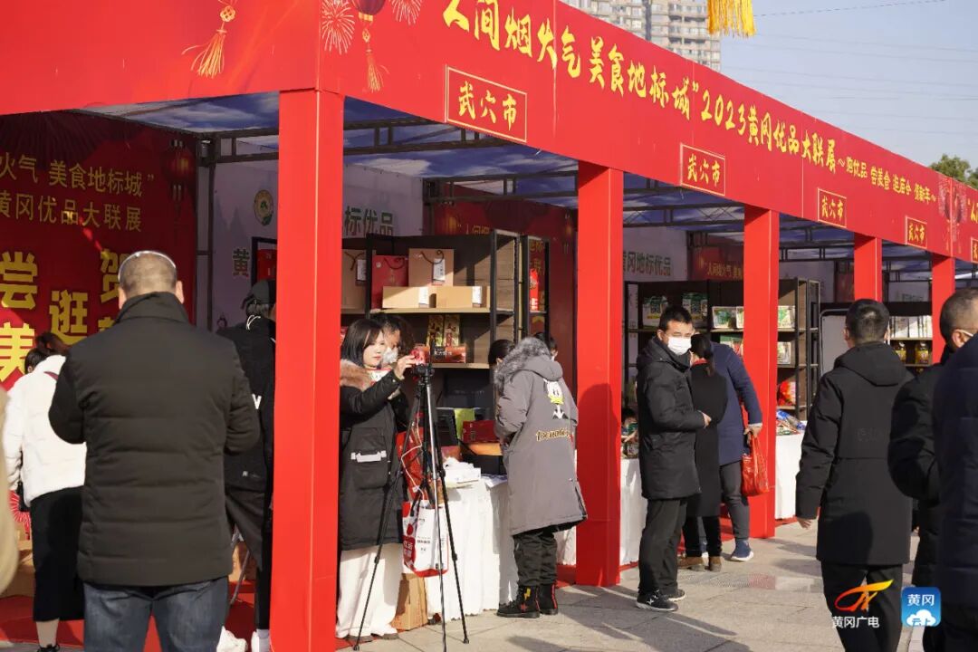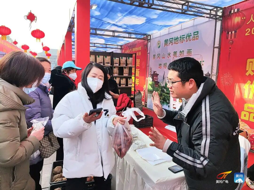 庙会上,黄冈市地标优品特色产品琳琅满目!品年味,购年货,天气虽冷,但人气十足,市民们在现场选购各类心仪年货。