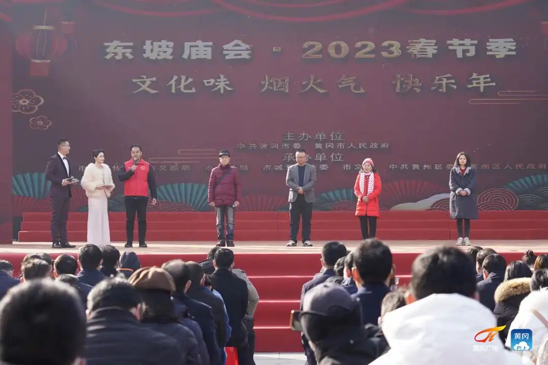 随着威风锣鼓的敲响,东坡庙会·2023春节季正式开启。舞蹈《新时代 新希望》让大家感受到久违的烟火气回来了;国家级非物质文化遗产湖北大鼓《时代巨轮再启航》唱响了黄冈新年!