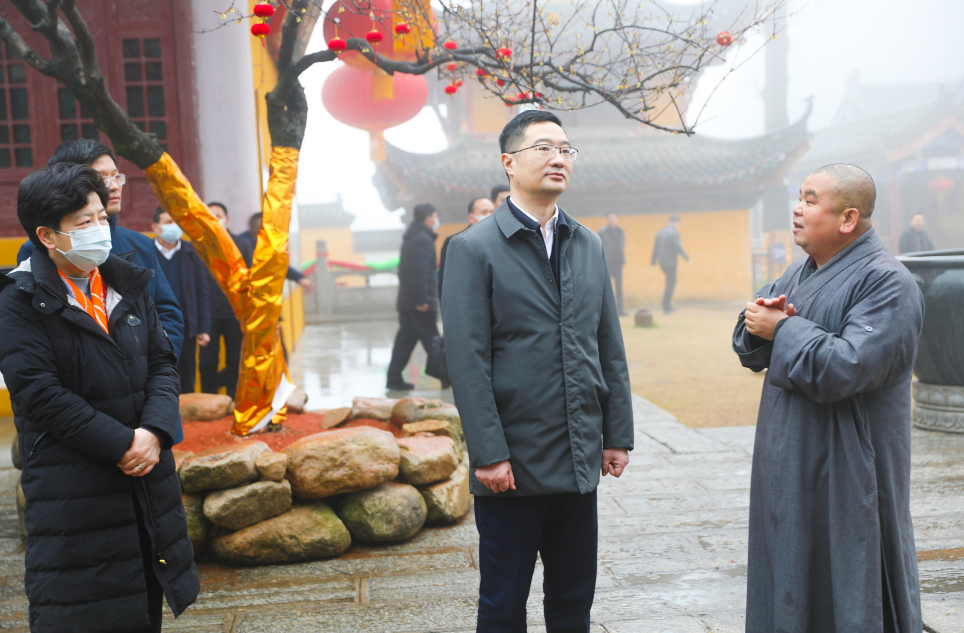 云上黄梅报道(全媒体记者:费留灿)2月8日至9日,省委常委、统战部部长宁咏在我县调研宗教中国化工作时强调,要深入学习习近平总书记关于宗教工作的重要论述,全面贯彻党的宗教工作基本方针,积极引导宗教与社会主义社会相适应,推进我国宗教中国化“湖北实践”走在全国前列。市委常委、统战部部长李玲,县委书记刘欲晓陪同调研。