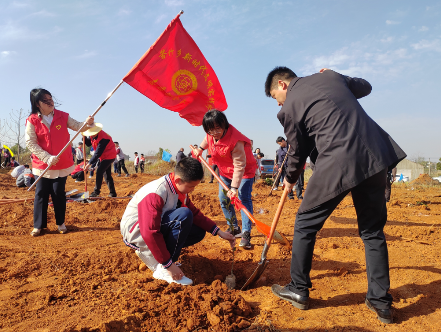 云上黄梅报道(全媒体记者 周求安 通讯员 赵彦芳)3月13日上午8点,苦竹乡徐碾村李大山人头攒动。苦竹乡50名干部职工、中心学校80余名学生,在徐碾村李大山开展主题为 “践行雷锋精神 共植绿色家园”志愿服务植树活动。植树现场,大家分工协作,挖坑、放苗、填土、正苗、浇水,一派热火朝天的劳动景象。经过2个小时的植树活动,1200余株油茶苗栽植完毕,蔚然成林。通过植树,不仅让大家感受到劳动的乐趣,也增强了保护生态环境的意识。